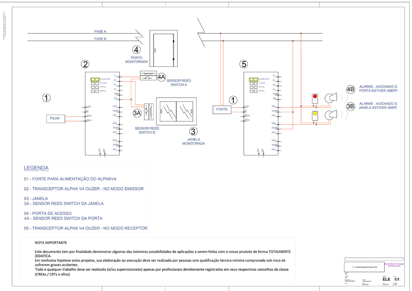 - Item 4: Sensores Magnéticos (Reed Switch) com fio (Quantidade: 2). (Tipo NA conforme diagrama).